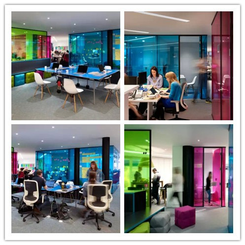 中高端武汉办公家具定制厂家“美高家具”办公环境规划专家点赞:斑斓的色彩激发人们的创意灵感,灵动的格局令这里的每一天都精彩纷呈。画廊般的艺术展示墙,这里也是员工的灵感创意地,可以随意在墙上写画, 映衬出富于创意的ThoughtWorks文化精神。
