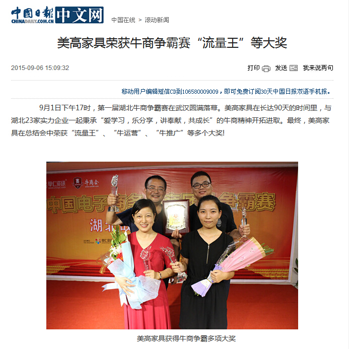 【中国日报网】美高家具荣获牛商争霸赛“流量王”等大奖